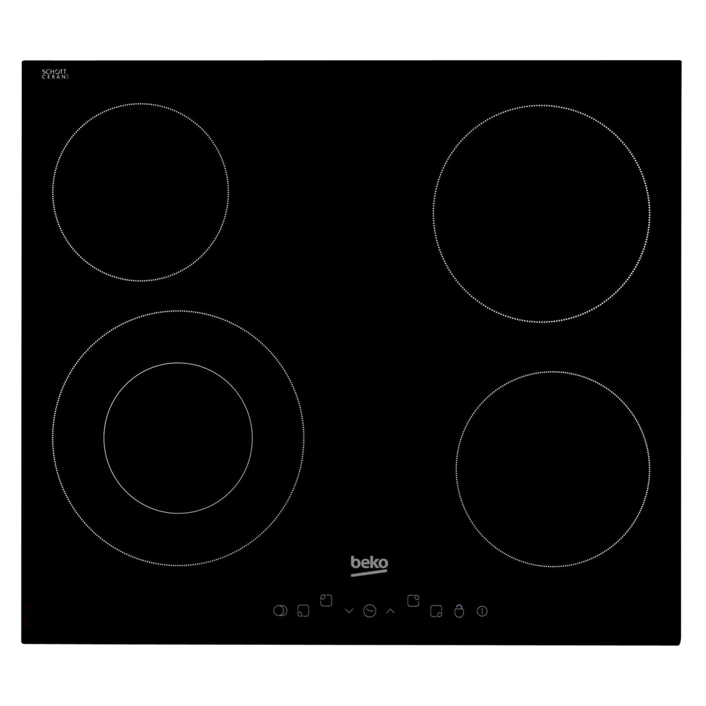 Demonstrating a sleek design, the Beko HDMC32400TX built-in ceramic hob is ideal for smaller families or couples, as it features just 2 different sized heating zones. Small but mighty With 6 different heating levels to choose from, the Beko HDMC32400TX makes cooking at home easy & versatile. You can cook anything from delicious soup to succulent steak. Convenience Touch controls making using your hob simple & easy, while a handy timer means you can cook accurately to make sure you get optimum results every time. Easy to clean design Ceramic hobs are brilliantly safe thanks to flame-free functionality & the avoidance of unhealthy gas fumes. They're also super easy to clean, just wipe your hob with a damp cloth & anti-bacterial spray to get rid of grease & grime from cooking − no scrubbing required. Please note: there should be a minimum height clearance of 65cm between an electric hob & the cooker hood above it. Please note: there should be a minimum height clearance of 65cm between an electric hob & the cooker hood above it.