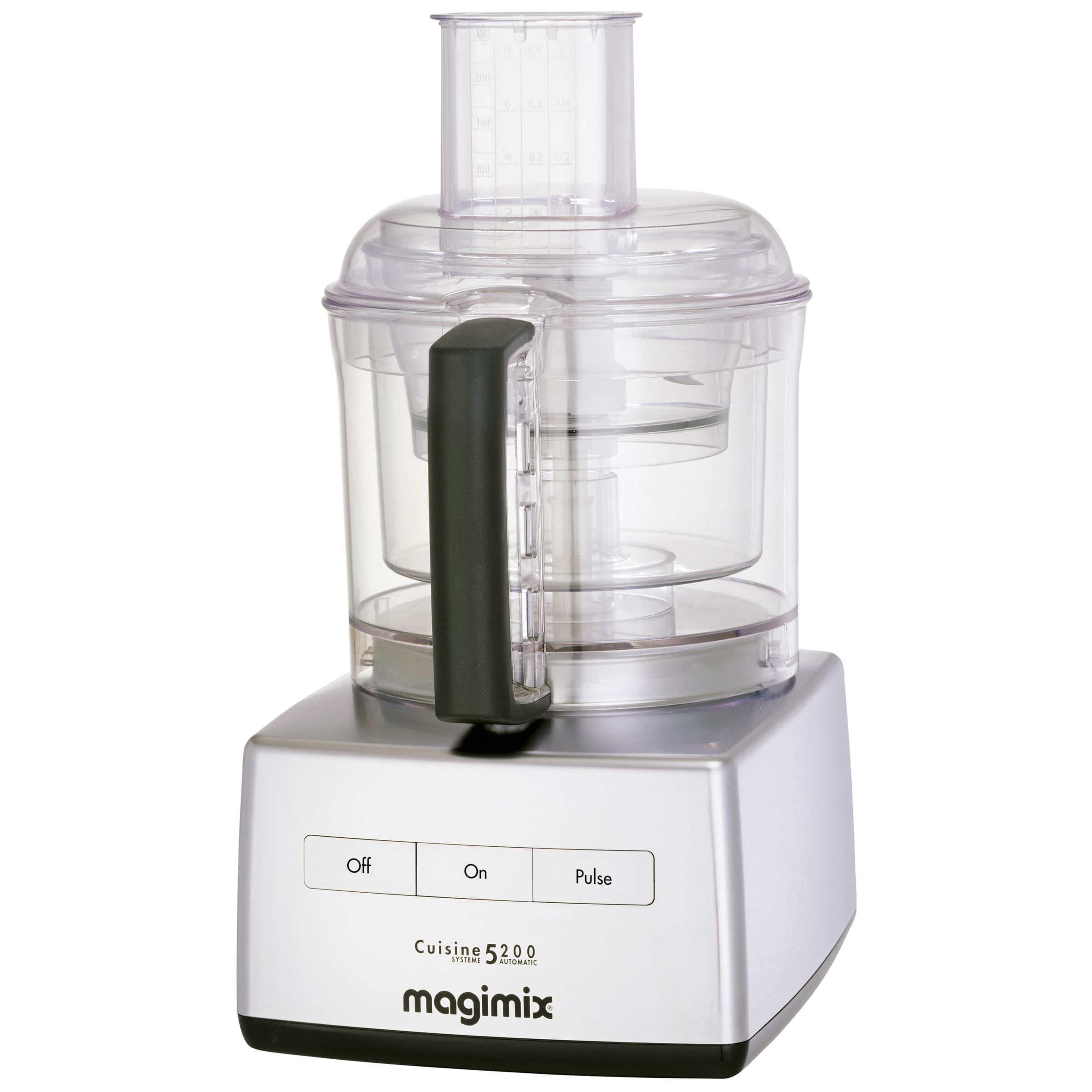 Magimix products are designed to make life simpler for the serious cook. Most have their roots in professional products originally designed for commercial use. For this reason they are built to last longer. With the Magimix 5200XL, the most demanding tasks can be accomplished quickly, easily & quietly. Just 3 buttons allows access to all the functions: The motor automatically adjusts varying the power for each task. A recipe book full of ideas is supplied with each model. The blade & accessory box provides compact & safe storage for the main blade, whisk & discs. As well as the main bowl, the Magimix 5200XL comes with a midi bowl & a mini bowl. Placed inside the main bowl, each of these bowls functions entirely independently allowing you to carry out several tasks at once, saving you time.