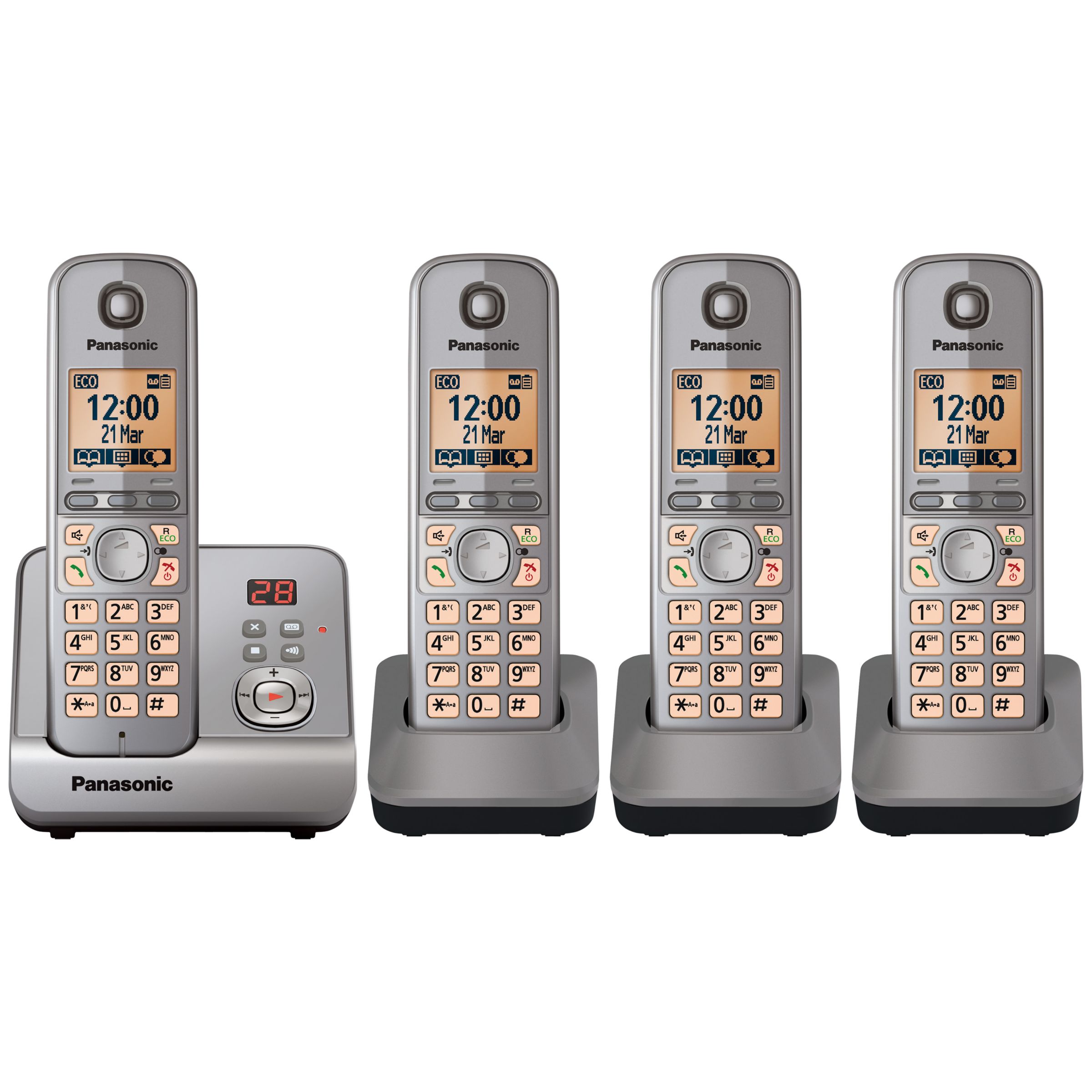 The Panasonic KX-TG6822 is an easy-to-use digital cordless telephone with answer machine. The curvy base unit & handset are designed with unity & comfort in mind, providing a modern, aesthetically pleasing feature for your home or workspace. With of talk time & of standby time, the KX-TG6822 is an energy efficient phone that has a long battery life, ensuring that it's more likely to be ready for your calls when you need it. A dedicated ECO button will also put the phone into a power saving mode, preserving up to With room to store up to in the phonebook, you'll never have to dig around to find the number of those most important to you, as they'll be just a few button presses away. of answer phone recording time will ensure that if someone wants to get in touch when you're not around, they can still leave their details for you to get back to them. Large 1.8-inch amber backlit LCD display Caller ID with 50-station memory Hands-free speakerphone. 120 name & number phonebook Power-saving eco mode.