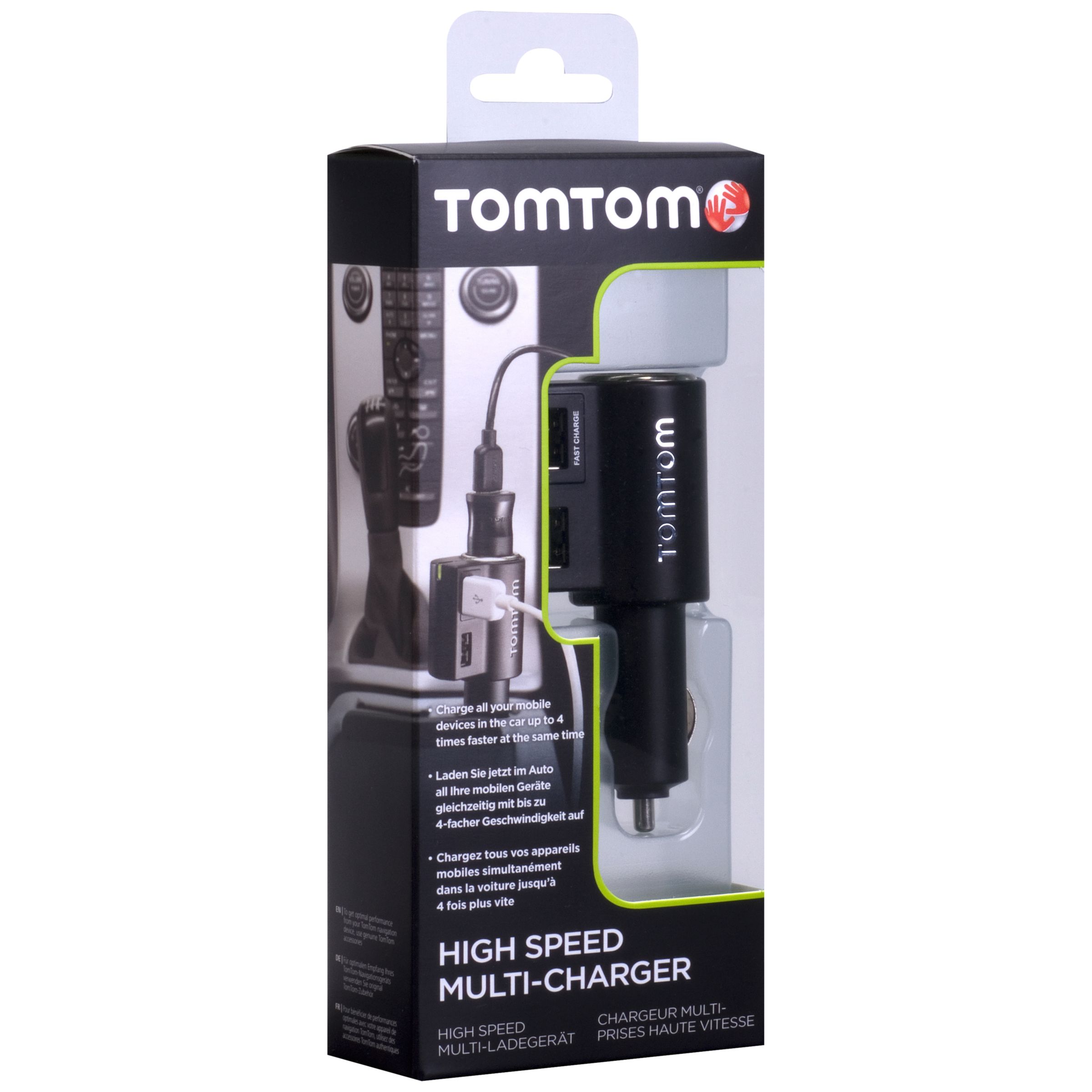 Charge up to 3 devices at the same time with the high speed multi charger. Suitable for USB (Universal Serial Bus) devices such as mobile phones & navigation devices as well as high voltage devices such as an in-car DVD system. The 2.1 amp port is especially suitable for extra fast charging of high power USB (Universal Serial Bus) devices like the iPad. To get optimal performance from your Tom Tom navigation device, use genuine Tom Tom accessories. Charges up to 4 x faster, Charges all your devices at the same time, Works with USB (Universal Serial Bus) & 12 Volt products, Works in cars, caravans & trucks, Also suitable for iPad, iPod & iPhone Contains High Speed Multi Charger ...