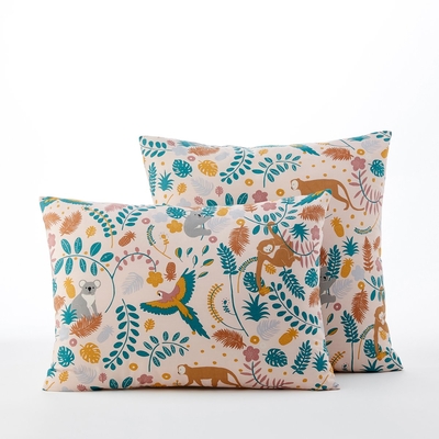 . Jangal single pillowcase. A jungle print featuring cute koala bears, cheeky monkeys & colourful parrots for sweet dreams at bedtime. In very densely woven 100% pre-washed cotton percale (80 threads/cm²), made from very fine threads & ultra long fibres, a mark of quality. Our pillowcases are sold as singles, so be sure to order what you need to complete the look of your bedding. Match this pillowcase with the rest of the bedding in the range for a stylish bedroom. & you can mix & match it with different colours & styles from our other bedding ranges when you want to change things up & create your own unique look. Features⢠Pillowcase in rectangular & square shapes⢠sack shape⢠jungle print ⢠The Oeko-Tex® label guarantees that the items tested & certified do not contain any harmful substances that could be detrimental to health Product Detailsâ¢