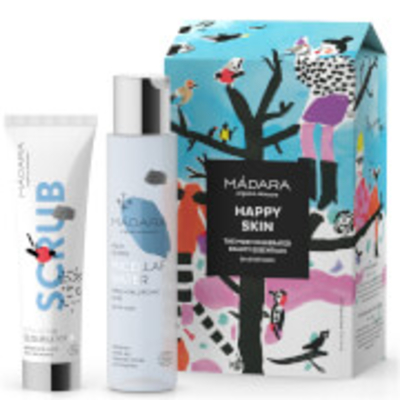 The MÁDARA Happy Skin Essentials Kit combines two limited edition full size products to leave skin feeling fresh & radiant. The award-winning micellar water will cleanse & replenish, while the oil-based exfoliator will tackle dry, dead skin cells to promote a smooth & glowing complexion. Suitable for all skin types. The Set Contains: Multi-Action Micellar Water (100ml) An award-winning, all-in-one no-rinse cleanser to effectively remove makeup & impurities. Suitable for daily use, the micellar cleanser is formulated with natural oil micelles suspended in a soothing Aloe Vera base to purify, balance & hydrate skin in a single step. Northern Peony Root extract provides calming & antioxidant properties, while Hyaluronic Acid delivers a replenishing, skin-quenching effect. Cleansing & toning in one, the micellar water will leave skin feeling fresh & hydrated. Free from nuts & gluten. Vegan-friendly. Exfoliating Oil-to-Milk Scrub (60ml) A rich, oil-based exfoliator that transforms into a delicate milk on contact with water. Fortified with Apricot & Oat Oil molecules to bind dirt & impurities, plus natural Volcanic Sand & natural wax microbeads, the face scrub gently exfoliates away dead skin cells with medium-grade abrasiveness to encourage gentle yet effective resurfacing. It buffs & polishes skin without stripping moisture to leave skin feeling radiant & renewed.