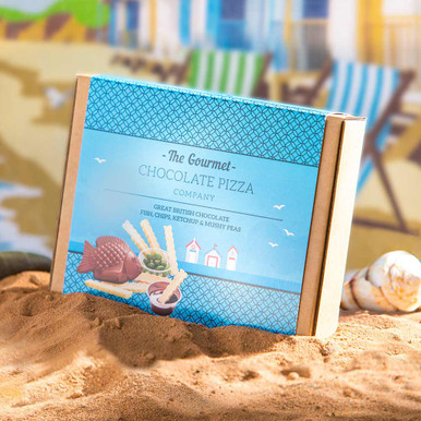 That classic British meal of fish & chips… but with but with a chocolatey & sugary twist! Nothing in this box is savoury, but you’ll want to savour it all! Contains a milk chocolate fish, some white chocolate crinkled chips & condiments such as mushy peas (aka green apple jellybeans) & ketchup (aka raspberry dipping sauce)! Comes presented in a kraft gift box & wrapped in newspaper! Fin.