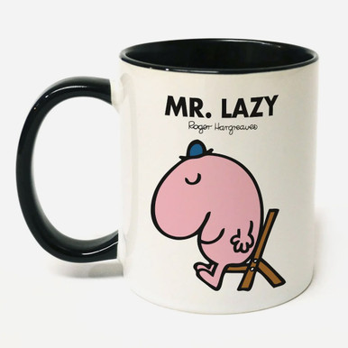 - it’s a personalised Mr. Lazy mug! You can add a name to the mug (of up to 16 characters), replacing Lazy with the name. The mug is made from high-quality porcelain & is 100% dishwasher & microwave safe. So, if you know a lazy man, order this Personalised Mr. Lazy Mug today!