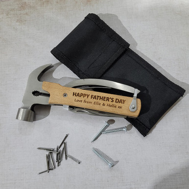 It’s the ultimate problem-solving sidekick: the Personalised Multitool Hammer! This ingenious tool is like having a superhero in your toolbox. With its hammering prowess & multitool capabilities, it's ready to tackle any task with a touch of personalised flair. Add your own message over two lines (of up to 20 characters each) to make it truly one-of-a-kind. From opening bottles to tightening screws, this multitool boasts an arsenal of gadgets, including knives, a bottle opener, a screwdriver, & more! It's the perfect gift for the handy hero in your life who can fix anything & still look cool doing it. So, let them unleash their inner Mac Gyver & conquer every DIY challenge with style & a touch of personalisation.