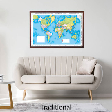 Calling all globetrotters & adventure enthusiasts! Behold the magnificent Personalised World Traveller Map, your ultimate companion for charting your conquests across the globe! With its vast expanse waiting to be explored, this map is your canvas for marking the places you've bravely ventured. With a delightful assortment of 100 map pins, available in five vibrant colours, you can showcase your past conquests & dreamy destinations yet to be explored. But wait, there's more! This extraordinary map is equipped with a laminated surface, granting you the freedom to jot down delightful notes & anecdotes, forever intertwining your precious memories with the very essence of your travels. & to make it truly yours, we offer personalisation over 3 lines with up to 60 characters, which will grace the title box of your map, immortalizing your wanderlust in style. & as the crowning touch, your beloved map is professionally framed in your choice of either sophisticated black, dark or charming light wood—your choice, your statement. Whether you're seeking an extraordinary gift or a personal keepsake, this Personalised World Traveller Map is the pinnacle of wanderlust admiration. Let it be a constant reminder of your daring expeditions, incredible experiences, & the sheer beauty of a world that eagerly awaits your next grand adventure. Bon voyage!