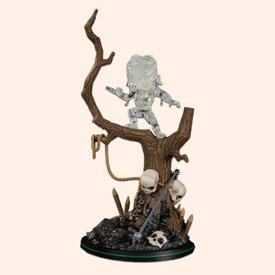 Embark on a thrilling journey into the heart of the Predator's hunting prowess with the Q-Fig Predator Shift Suit Variant Max Elite Figure by Quantum Mechanix. These intergalactic hunters, notorious for their fearsome reputation, have a penchant for collecting chilling trophies from their prey. Crafted to capture the essence of the iconic scene where the Predator silently stalks Major Dutch Schafer, this exclusive edition takes the excitement to new heights—literally! In this mesmerising diorama, the Shiftsuit Predator lurks high above in the trees, its cloaking system engaged to perfection. Transparent & elusive, the figure warps light around its form, revealing only a subtle silhouette. Keep a keen eye on this 8-inch masterpiece, which meticulously showcases the Predator's high-tech gadgets, razor-sharp mandibles, & the hauntingly adorned tree trunk. This limited edition, individually numbered collectible—limited to just 5, 000 pieces worldwide—promises an enthralling visual feast, capturing the pulse-pounding anticipation of the Predator's relentless pursuit. Get ready to immerse yourself in the suspenseful world where the hunter becomes the hunted!