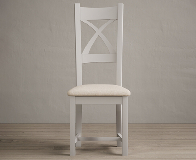 Painted Soft White X Back Dining Chairs With Linen Seat Pad