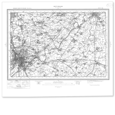 Reproduction map of Nottingham from the Revised New Edition, 1896 to 1904. Available flat (rolled) or framed.