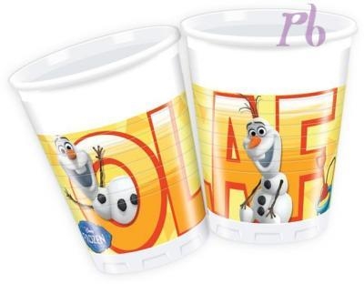 Pack of 8 cups. Plastic party cups each holding 200ml.A fun brightly coloured range of party tableware based on the Disney Frozen theme. Suitable for boys & girls birthday parties you can purchase the whole Olaf party range, from plates, cups, napkins & much more.