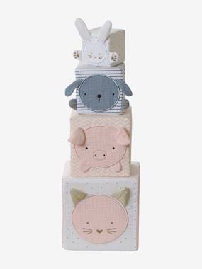 Height: 49 cm MORE INFORMATION: Suitable from birth Stimulates sensory development Encourages fine motor skills A lovely gift idea Stacking cubes in cotton, padding in polyester.