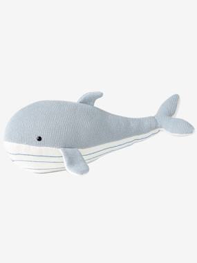 Width: 15 cm. Top part knitted Bottom part in striped cotton MORE INFORMATION: Suitable from birth Great gift idea for newborn babies Soothes the baby Stimulates their senses Creates affectional bonds Whale soft toy in 100% cotton.