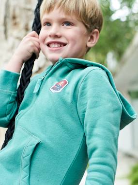 New style! A large, colourful & graphic inscription on the back & a patch on the front, this jacket with motif features every modern surfwear detail! Hooded jacket, for boys Large surf motif on the back Patch on the chest Hood with fancy drawcords 2 kangaroo pockets on the front Long sleeves Zip fastening on the front Rib knit edging on the cuffs & hem Jacket for boys, in fleece: 85% cotton, 15% polyester.