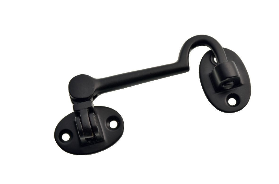 The Cabin Hook is very useful as it can hold back your doors during this hot summer allowing for fresh air to enter the house. This hook is very strong & can withstand wind pressures allowing for a safe environment that can prevent the door slamming shut. The black hook looks very stylish & does the job you need it to do. This version is longer to make sure it covers all range brackets.