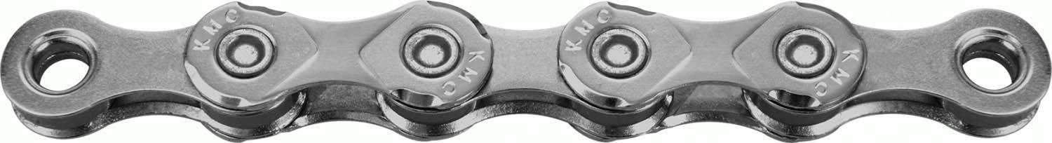 KMC X-Series Regarding the specific characteristics of Shimano, SRAM & Campagnolo systems, KMC has developed a series that meets the highest demands. This premium model combines the well-known high quality of the X series combined with the cool look of the Neo Chrome surface coating. The extremely precisely manufactured & dynamically chamfered edges of the plates ensure perfect shifting behaviour & maximum smoothness. X11 11 Speed Bike Chain The Non-Directional design of this chain allows maximum compatibility. The X-Bridge system on its outer plates is configured with precisely articulated angles for quicker & smoother gear shifting & quieter riding. ...