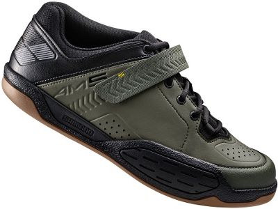 Shimano AM51 MTB SPD Cycling Shoes Hard-core off road all-mountain show with a high ankle cut ideally suited to rugged terrain High ankle cut with added rubber protection on key areas for more aggressive all-mountain riding conditions Aggressive mud-shedding rubber tread pattern for added extra traction Carefully designed reinforced uppers feature large breathable mesh panels & synthetic leather upper Glass fibre reinforced plate in the outsole transfers your energy straight to the pedals Three wide Velcro-style offset hook-&-loop straps support & hold the upper foot, making the fit highly adjustable Anti-slip detailing on the sole for accurate pedal entry in demanding conditions EVA shock absorbing heel arch & support aids comfort & providing excellent fit Replaceable composite spikes Reflective detailing on the heel keep you more visible in low light conditions Buy Shimano AM51 MTB SPD Cycling Shoes from Chain Reaction Cycles, the world